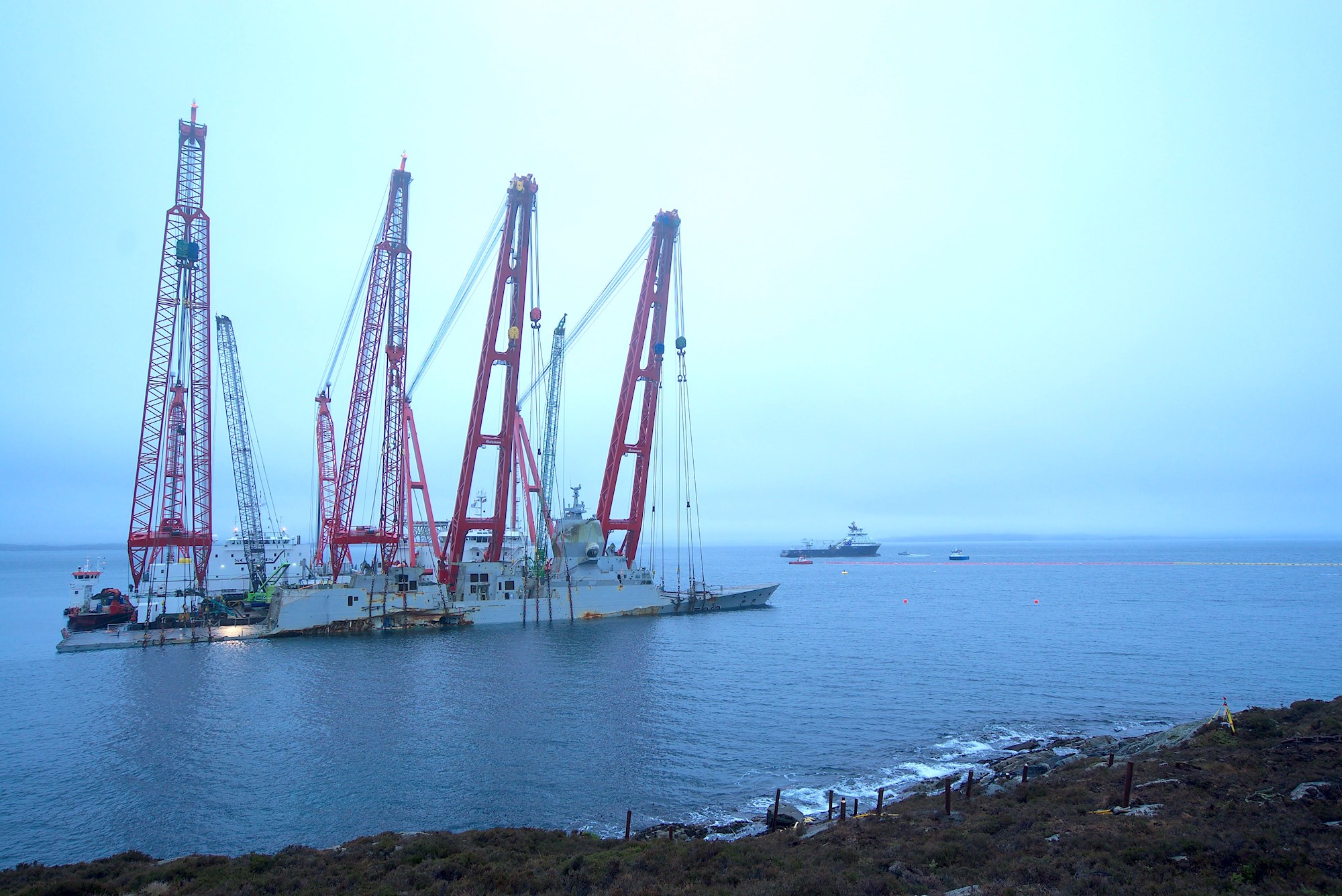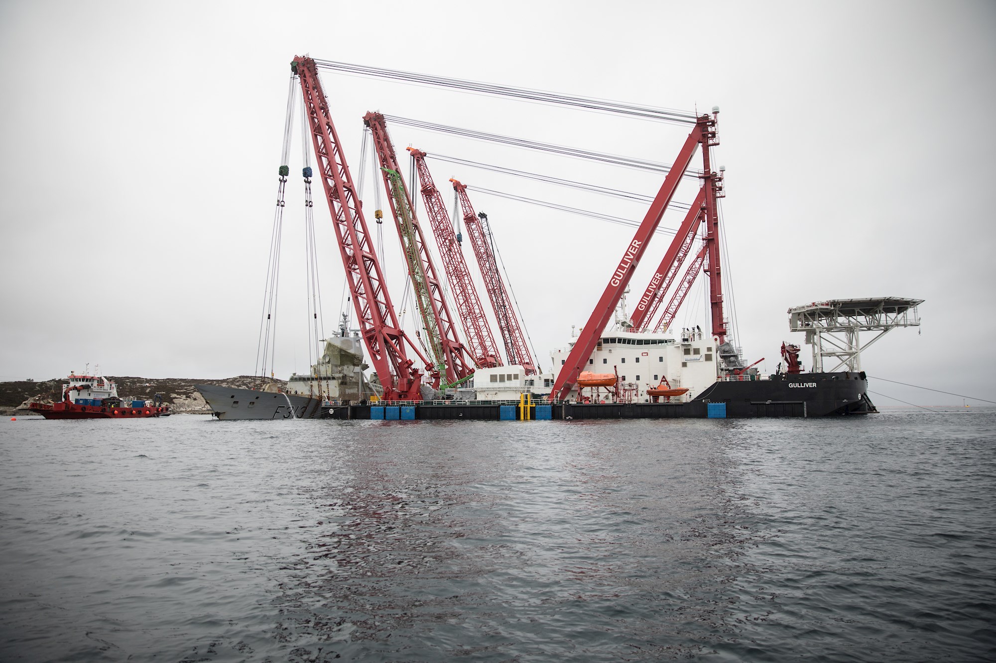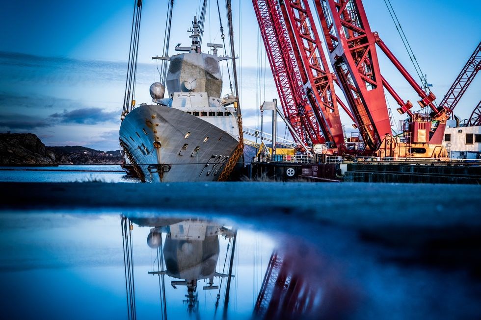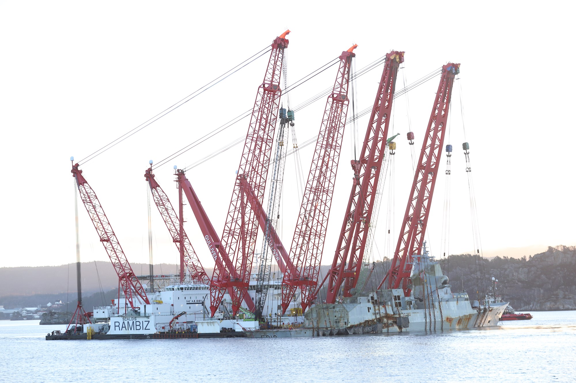 Belgian Salvage specialist Scaldis lifts Norwegian frigate out of fjord with unique Double Duo Lift method