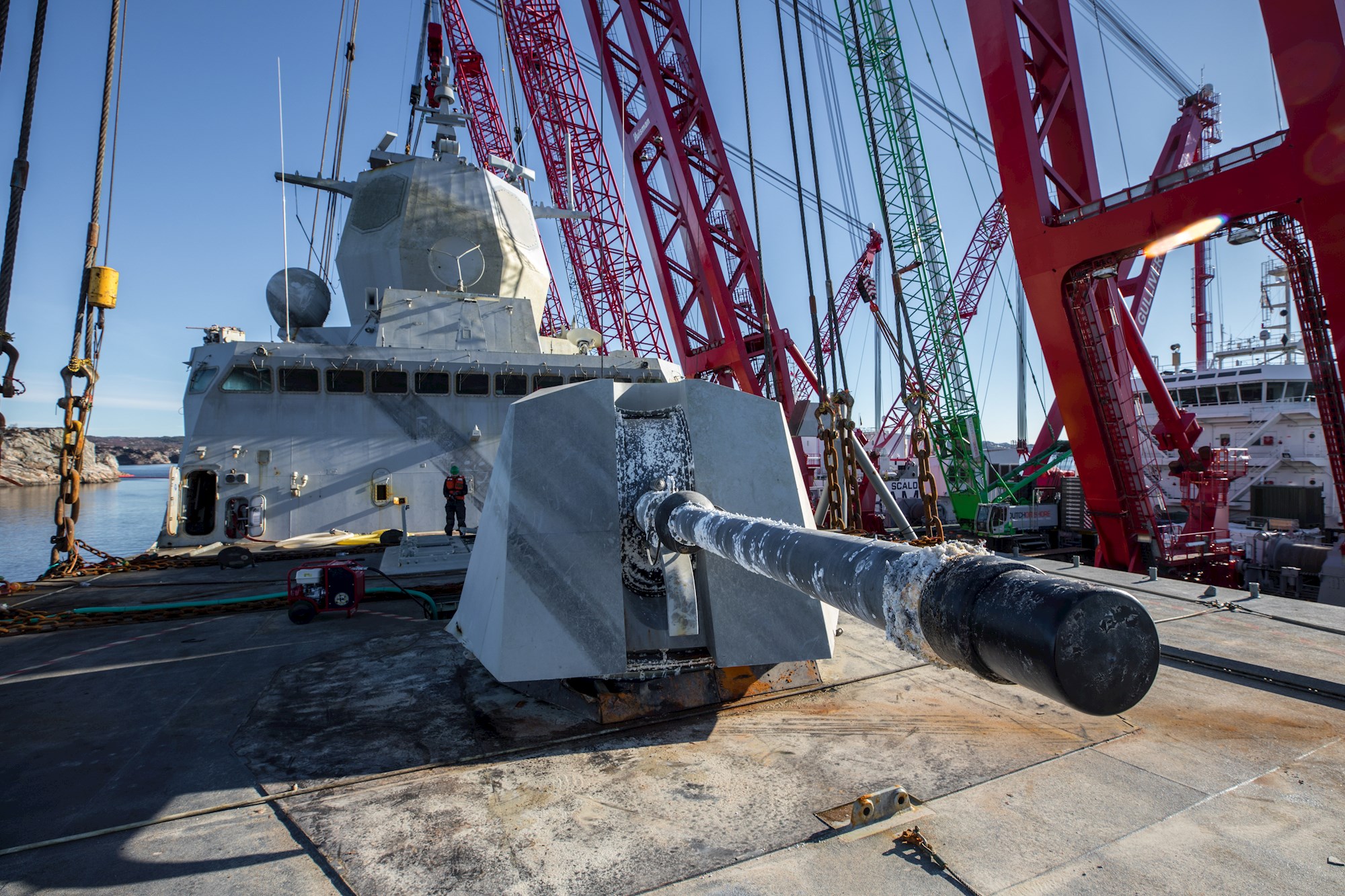 On 8 November of last year, the Norwegian frigate collided with the tanker 'Sola TS' in the vicinity of Bergen and sank on the inclined slope of a fjord. The Norwegian marine called on the expertise of SCALDIS and BOA Offshore to salvage the shipwreck.
