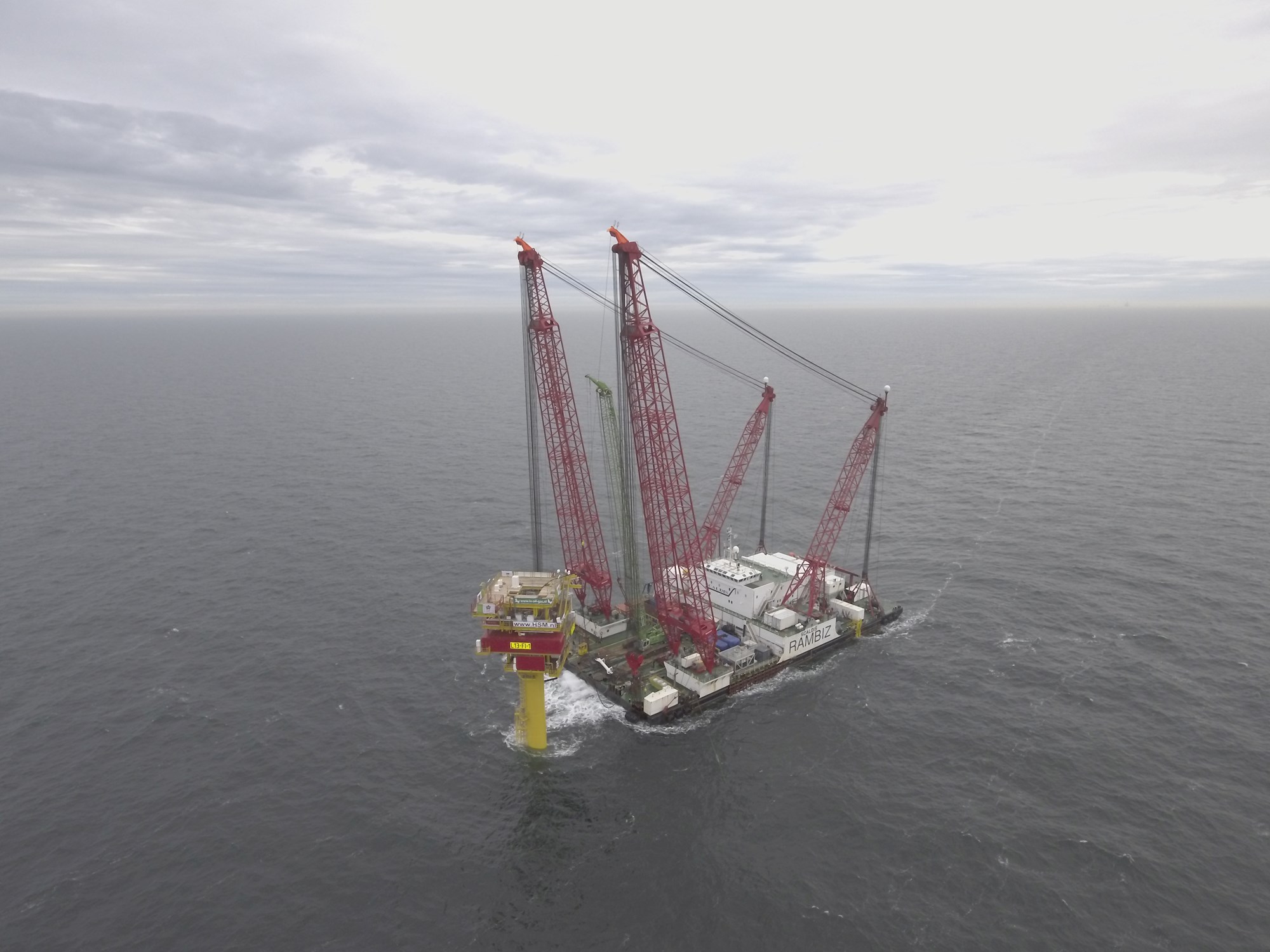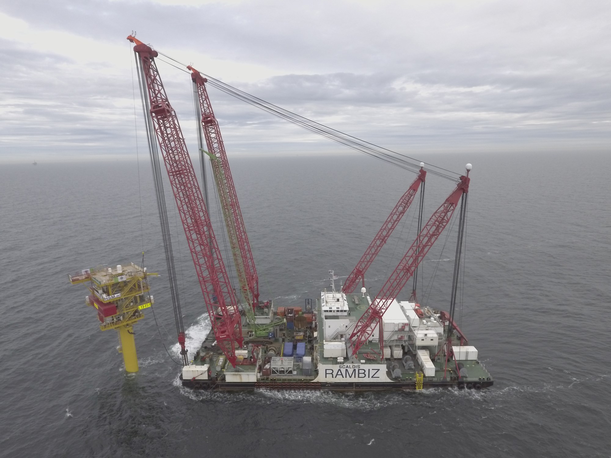 Rambiz, Scaldis' heavy lift vessel, successfully installed the unmanned gas platform L13-FI for NAM. The lifting, upending, positioning and driving of the monopile foundation was carried out using the Vibro Lifting Tool. The verticality of the monopile was installed well within tolerance, without the use of a gripper frame or installation template. A vibro hammer drove the pile down to six meters before the target penetration, before an impact hammer completed the job. Scaldis then installed the column and topside.