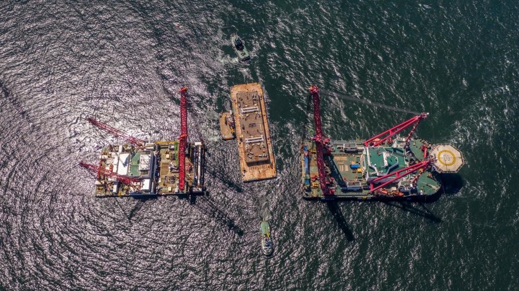 The most spectacular part of this trial was the a Double Duo Lift, a simultaneous and synchronised 5000t lift with Rambiz and Gulliver.