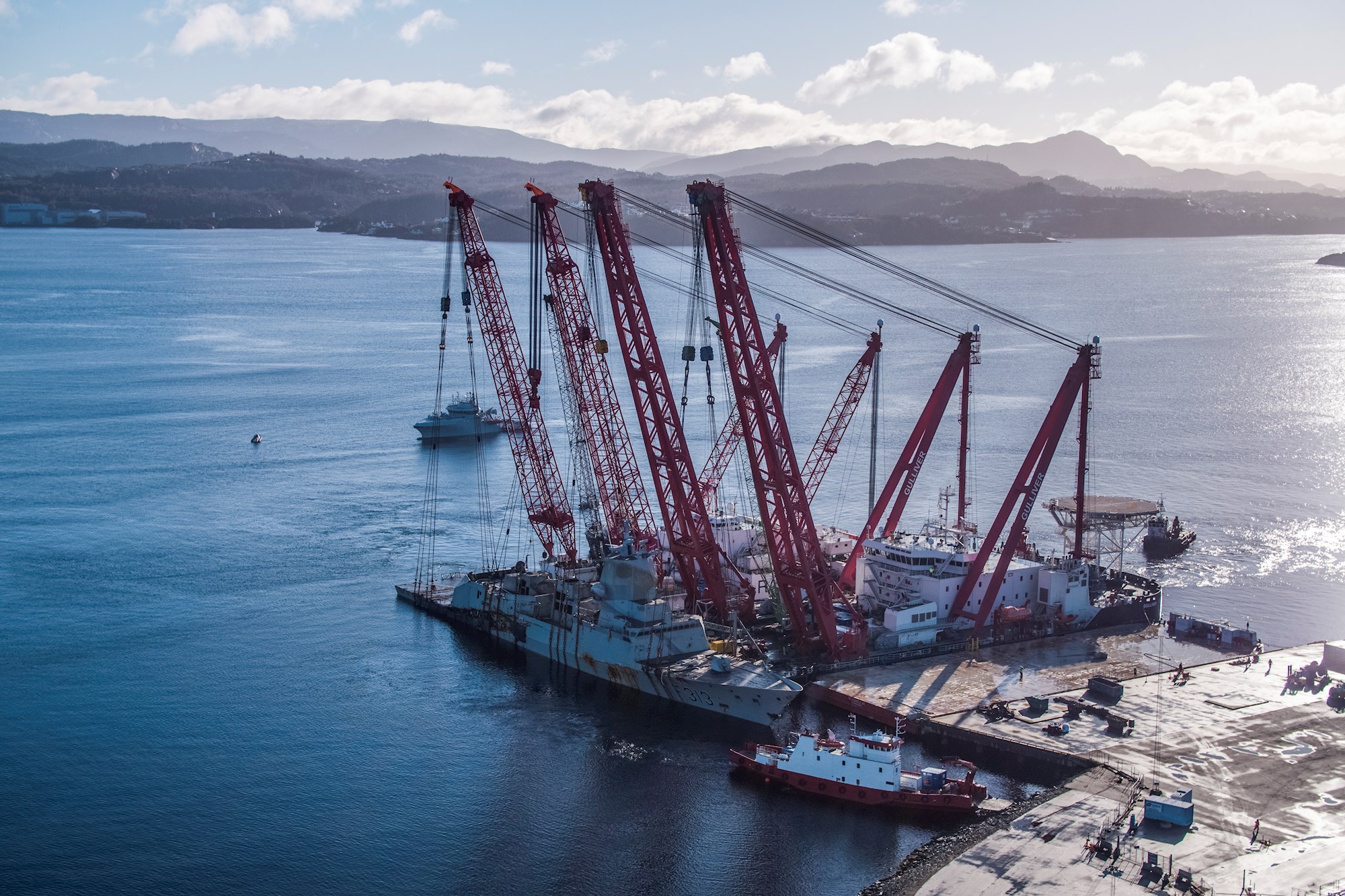 Belgian Salvage specialist Scaldis lifts Norwegian frigate out of fjord with unique Double Duo Lift method