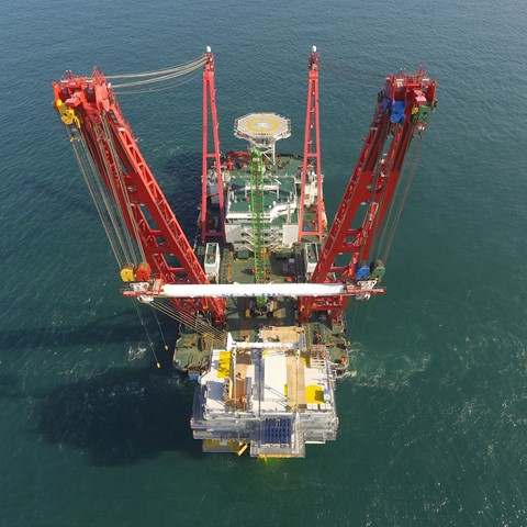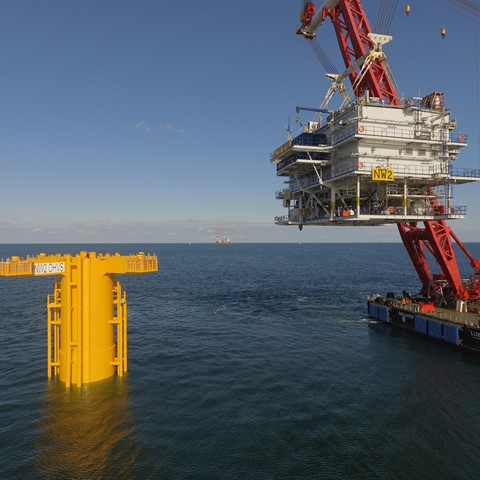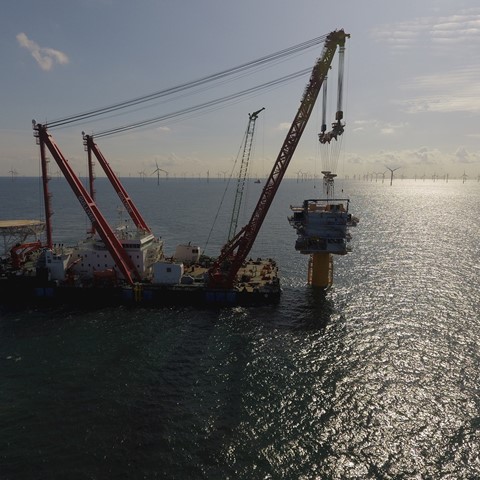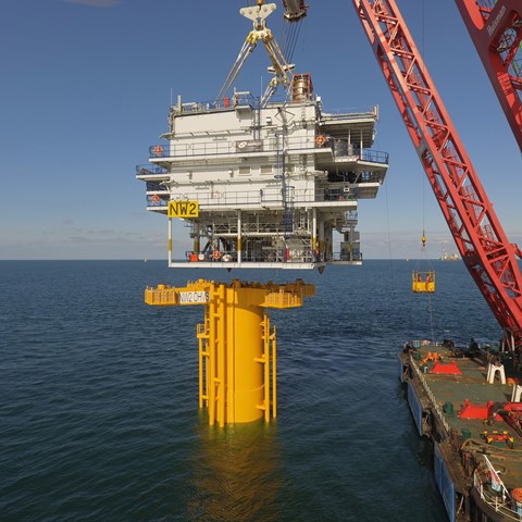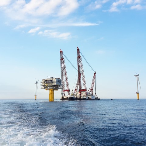 Heavy lift vessel Gulliver departed from Flushing to the Northwester 2 offshore site and performed her DP trials and preparations for installation. At sunrise, we received permission from Parkwind to start the operation. The substation transportation barge was moored to the Gulliver and the dyneema slings connect to the topside. Once the topside was lifted, The Gulliver sailed to the foundation and carefully started positioning herself before finally lowering the topside into position. For the first time, Scaldis had installed a topside completely on DP and thereby set a new milestone for the company.