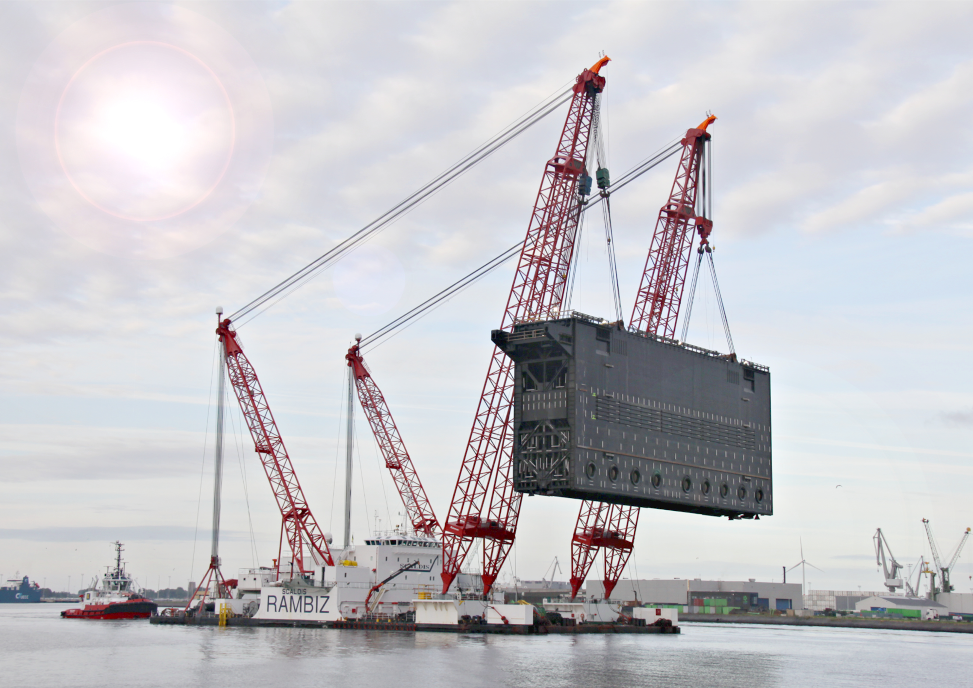 Lifting Luffing Frame and Crane Boom onto Pioneering Spirit